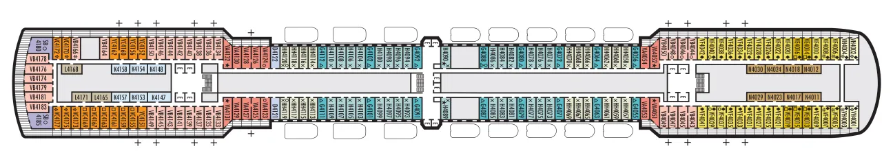 - A variety of cabins are available on this deck; see accommodation descriptions for details.