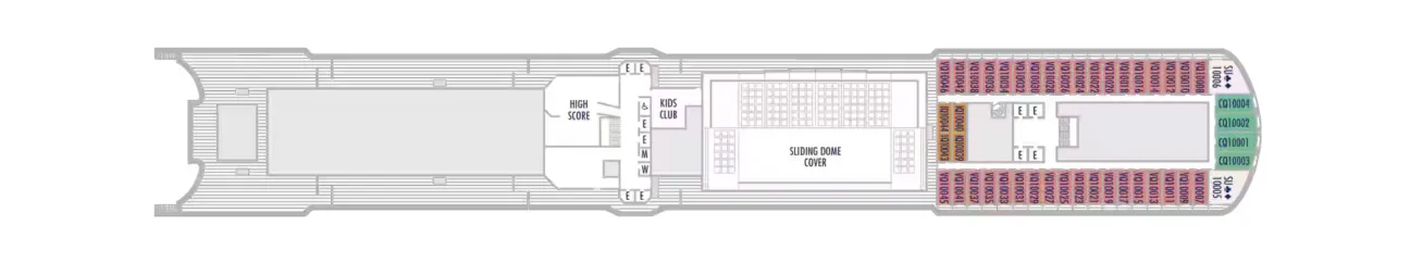 - Sliding Dome Cover over the Lido deck pool is a fully retractable roof that can open or close to suit all climates.