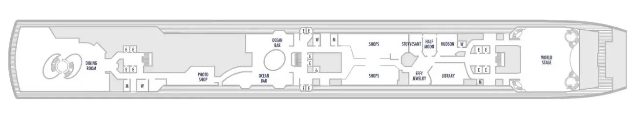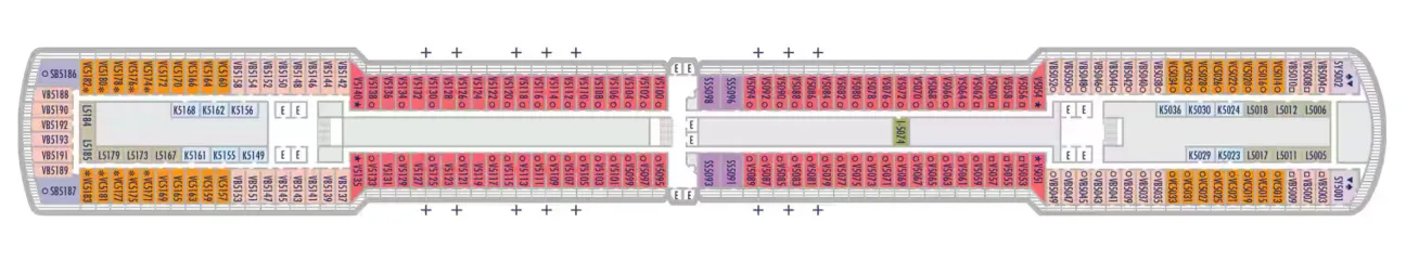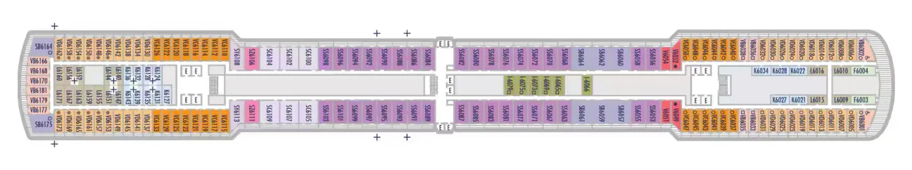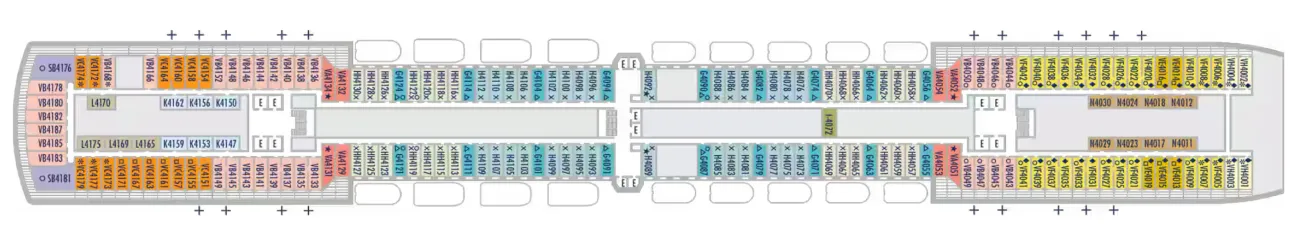 - A variety of cabins are available on this deck; see accommodation descriptions for details.