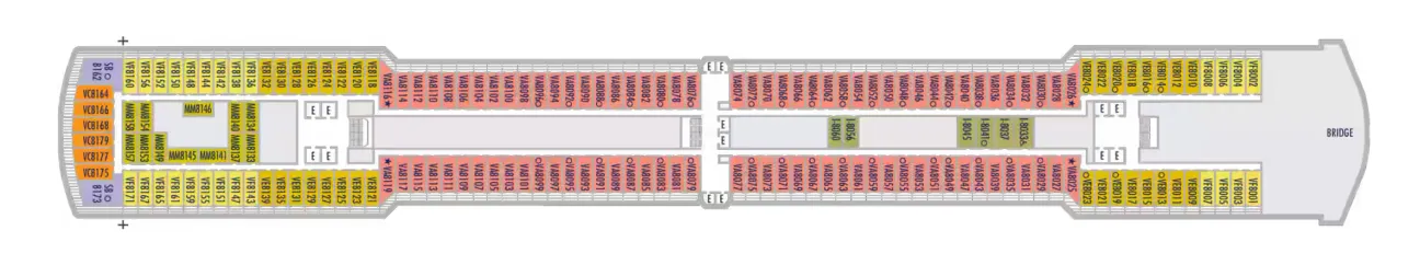 - Some cabins are available on this deck; see accommodation descriptions for details.