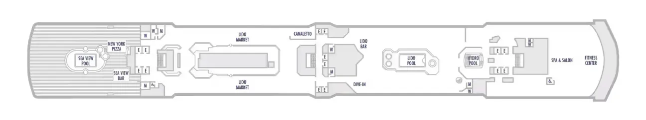 - You're never far from R&R on this deck. The Lido deck pools, Fitness Center and Spa & Salon await a deck above.