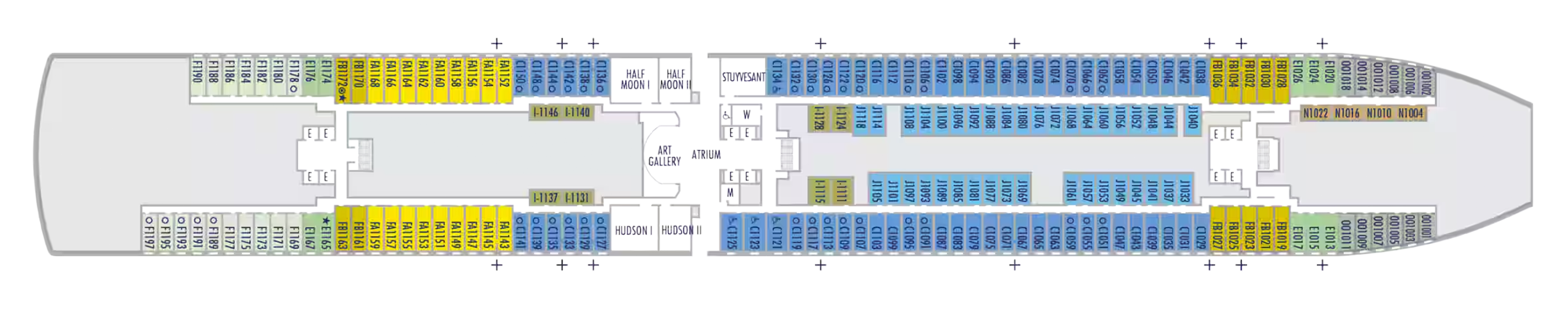 - Less ocean movement and proximity to Lower Promenade dining and entertainment.